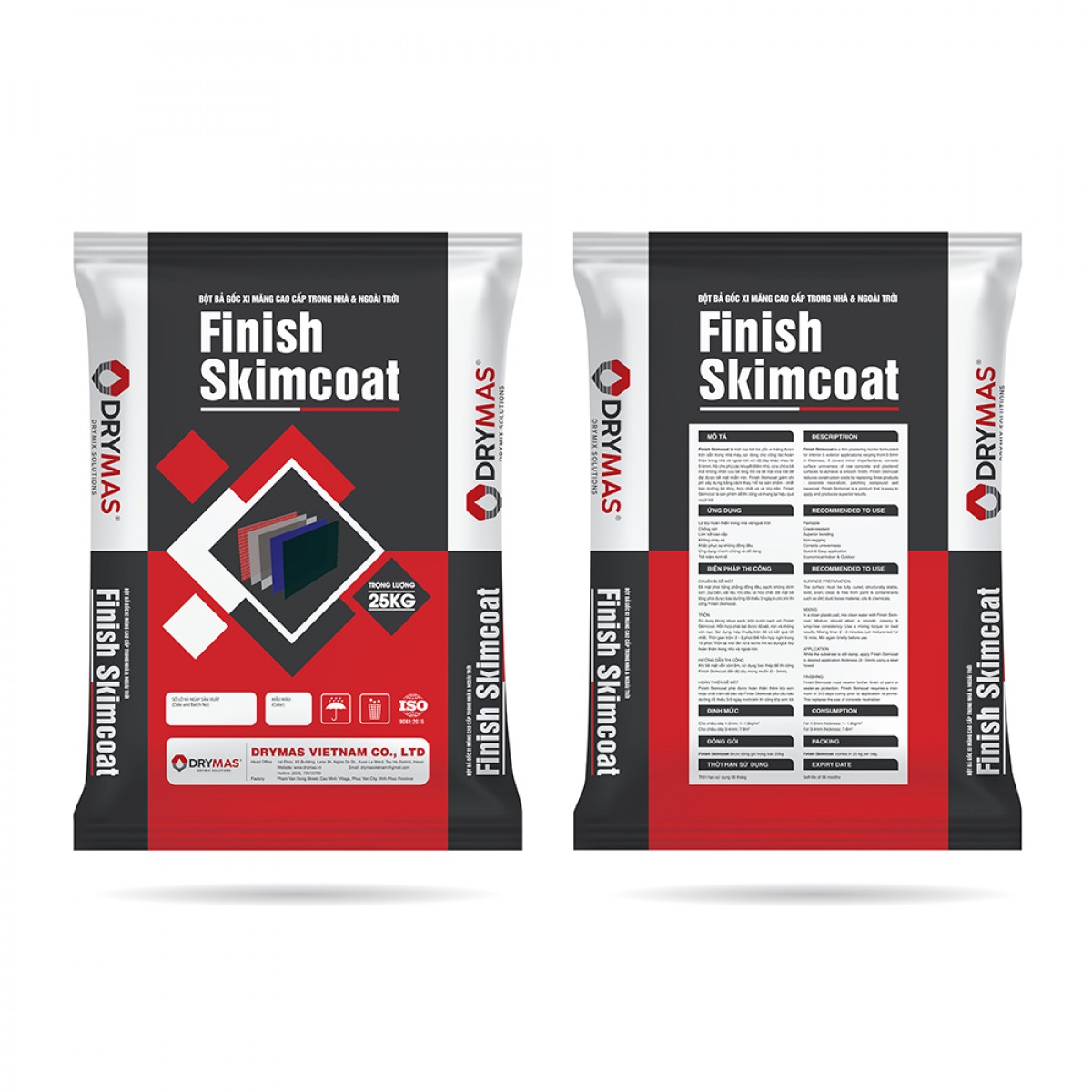 Finish Skimcoat là một loại bột bả gốc xi măng được trộn sẵn trong nhà máy, sử dụng cho công tác hoàn thiện trong nhà và ngoài trời với độ dày khác nhau từ 0-5mm. Nó che phủ các khuyết điểm nhỏ, sửa chữa bề mặt không nhẵn của bê tông thô và bề mặt vữa trát để đạt được bề mặt nhẵn mịn. Finish Skimcoat giảm chi phí xây dựng bằng cách thay thế ba sản phẩm - chất bảo dưỡng bê tông, hợp chất vá và lớp nền. Finish Skimcoat là sản phẩm dễ thi công và mang lại hiệu quả vượt trội